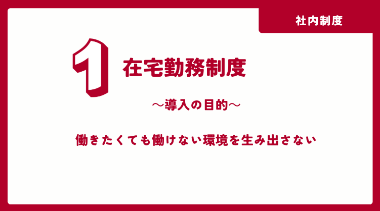 - ルール:就業場所は自宅のみ/通信環境の整備必須