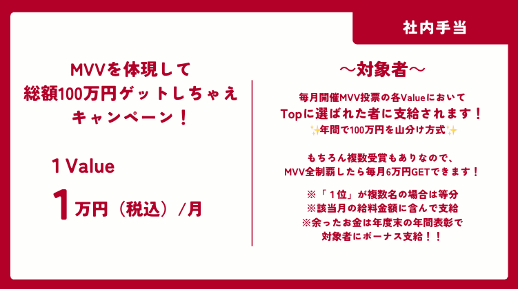 - 受賞者には 1 Value=月1万円(税込) を支給