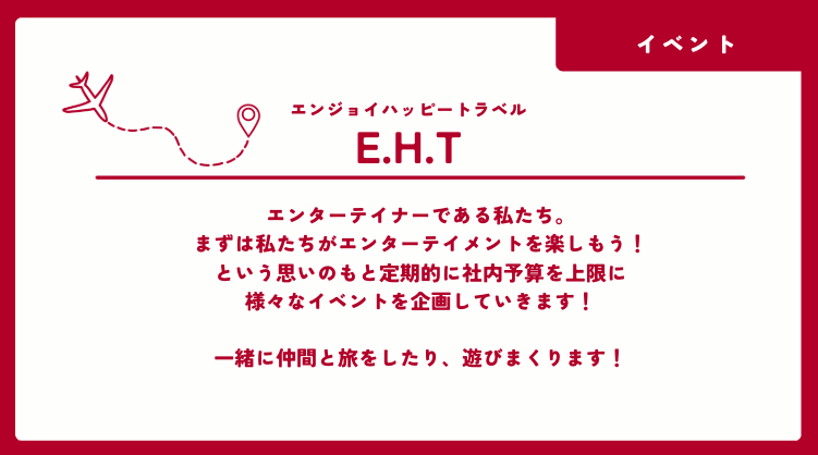 IHのカルチャーを象徴するイベントが、E.H.T(Enjoy Happy Travel)です。