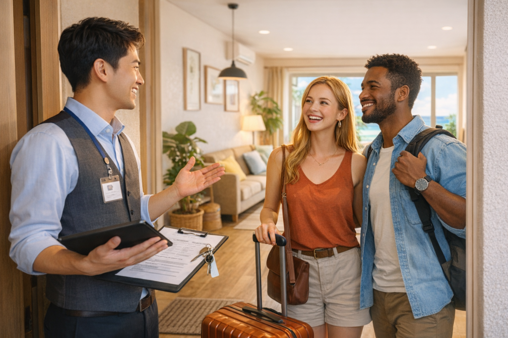 ゲストとのコミュニケーションでは、迅速で丁寧な対応が求められます。特に初めてのゲストには、チェックインの方法やハウスルールを明確に伝えることが重要です。株式会社インバウンドホールディングスは、多言語対応のカスタマーサポートを提供しており、ゲストとの円滑なコミュニケーションをサポートします。また、よくある質問やトラブルシューティングのマニュアルを用意することで、ゲストが安心して滞在できる環境を整えています。